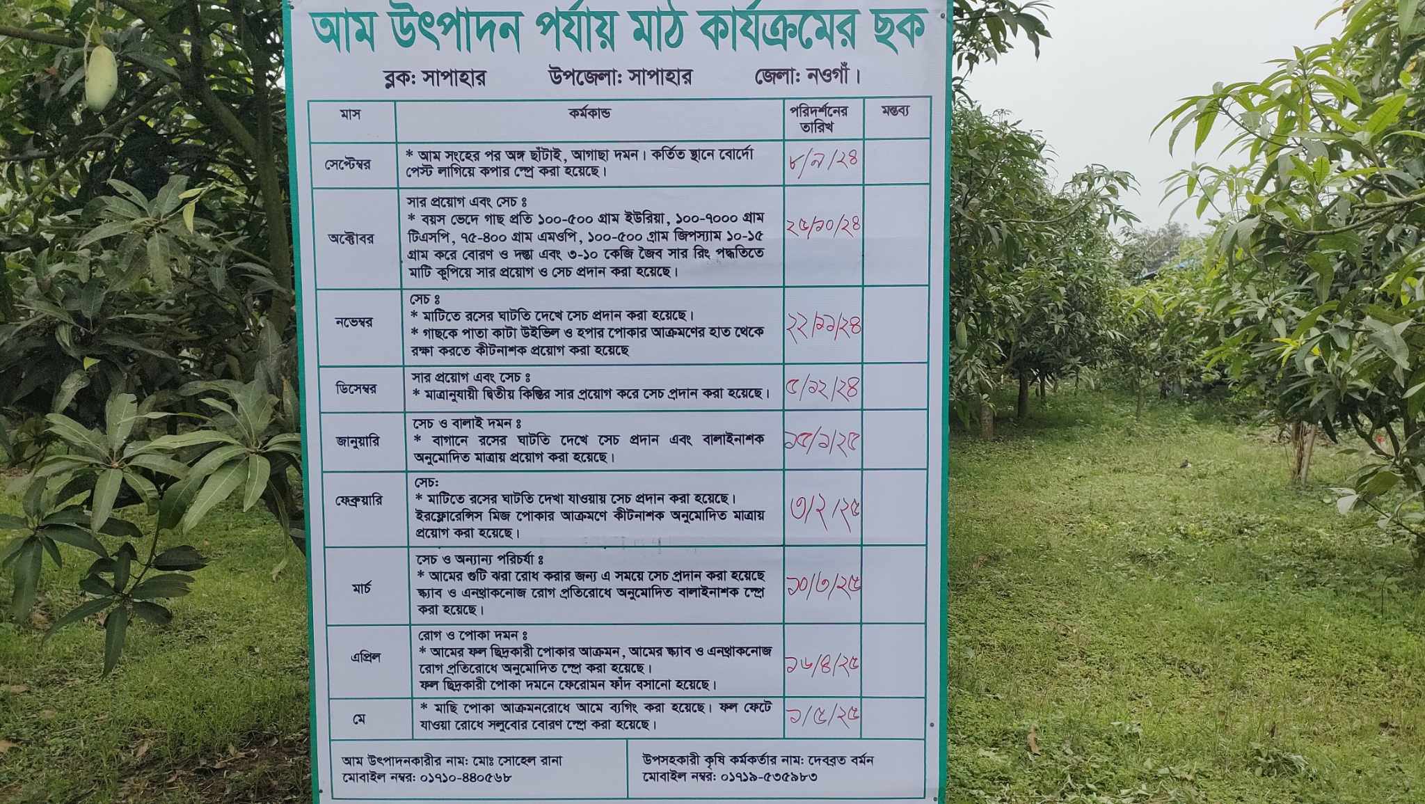আম উৎপাদন পর্যায় মাঠ কার্যক্রম ছক